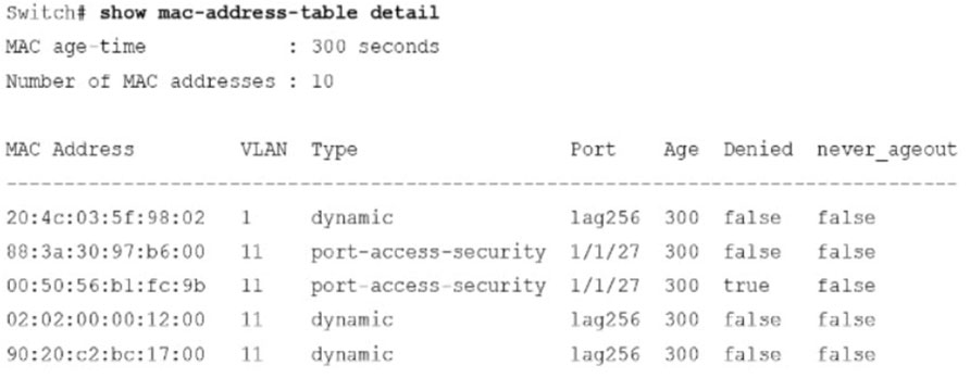MAC authentication is enabled on port 1/1/27 of an AOS-CX switch. The following MAC addresses are defined on the AAA server: