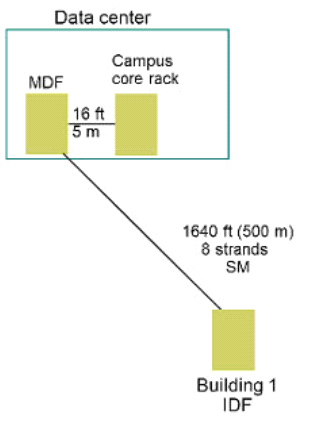 * Building 5 is further away from the other buildings, it connects to the network core without an aggregation layer.