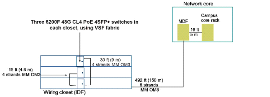 A customer needs a wired upgrade for a building on its main campus. The exhibit shows the switches that the architect has selected for each closet and me existing cabling. The customer is not open to changing the cabling.