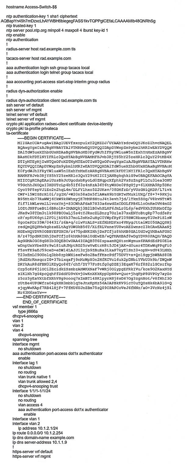 A customer has asked you to review their AOS-CX switches for potential vulnerabilities. The configuration for these switches is shown below:
