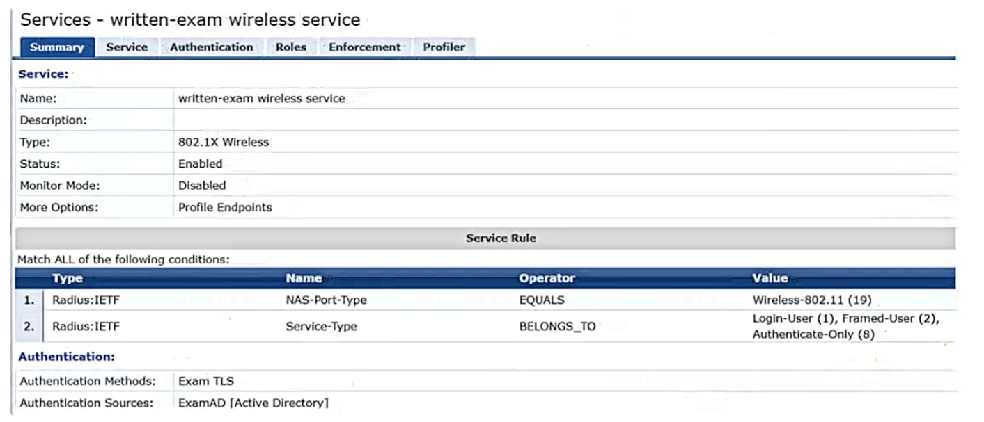 The WLAN security is WPA3-Enterprise with authentication to an Aruba ClearPass Policy Manager (CPPM) cluster VIP. RADIUS communications use RADIUS, not RadSec.