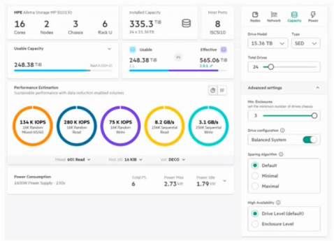 You are sizing an HPE Alletra Storage MP B10000 array (graphic provided).