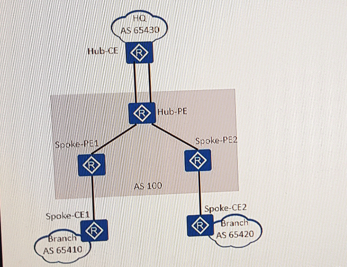 As shown in the figure below, an enterprise wants to implement secure access between the headquarters and branches through MPLS VPN. VPN traffic of branches must be forwarded through the headquarters for traffic monitoring. Which of the following statements regarding this solution is false?