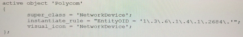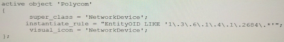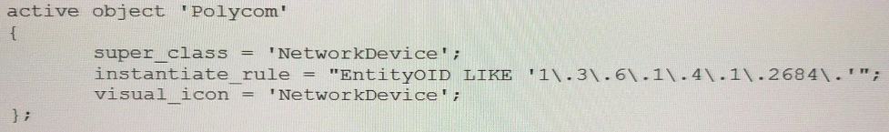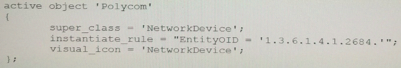 It was requested to add an AOC file for a new vendor (Polycom) with enterprise OID 1.3.6.1.4.1.2684. The vendor devices should be classified as network devices. Which AOC example is correct?