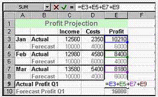 If the Enter key was pressed to accept the formula in cell E9, which of the following would be the result: