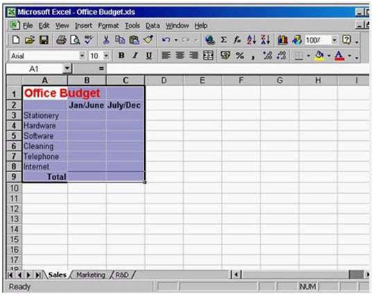 Copy the selected range and paste it into cell A1 in the worksheet entitled Marketing in this workbook.
