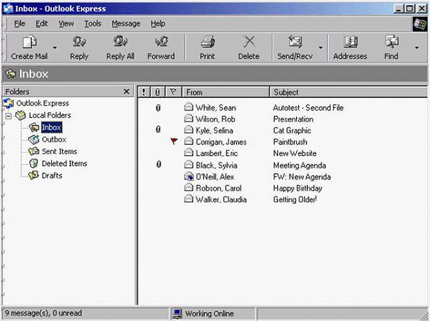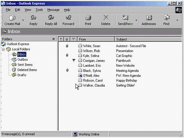 Messages under the Subject heading Planning are located in various mail folders in Outlook Express.
