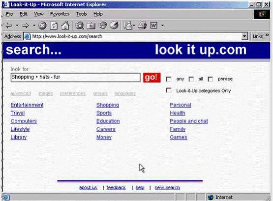 Modify the search requirements to include a Look-it-Up categories only for the words listed in the search criteria Click go! to submit your answer. Do not change any other settings.