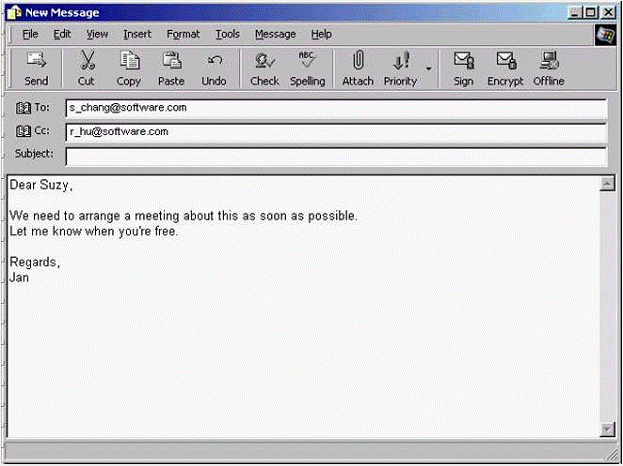 Enter the phrase Company meeting into the appropriate field to indicate what the message is about.