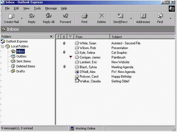 Use Outlook Express Help to access information on unread messages.