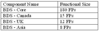 A Banking Deposit application (BDS) has three subsystems; each subsystem serves one particular location. All three subsystems share the core functionalities of the application, while each has its own unique functions. Databases are physically split and maintained separately by locations as well. What is the application size of BDS?