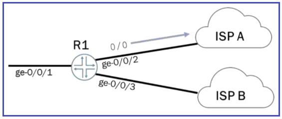 Your company has connections to two ISPs. Each ISP is in a separate routing instance. You need to advertise the 0.0.0.0/0 prefix from both ISPs to all your devices.