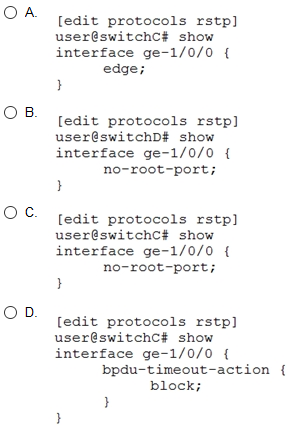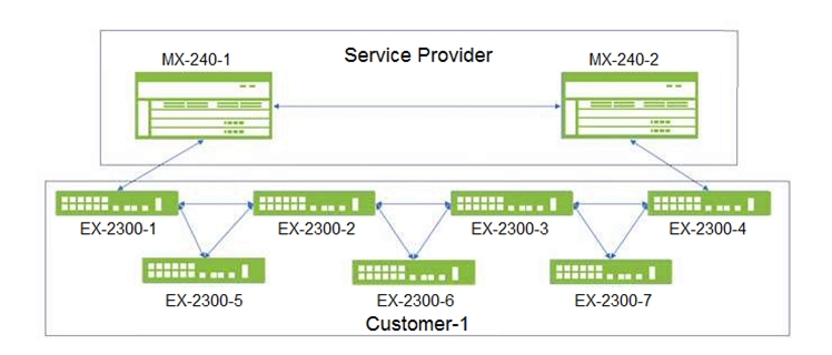 Customer-1 wants the Service Provider to allow STP to operate normally on all ports but only allow the MX Series devices to manage the Layer 2 topology.