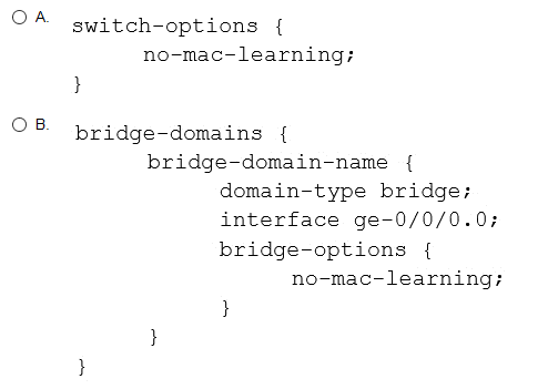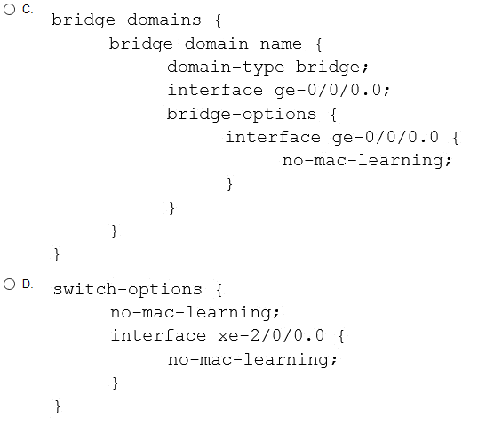 You want to disable MAC learning only for interface ge-0/0/0.0 on an MX Series device.