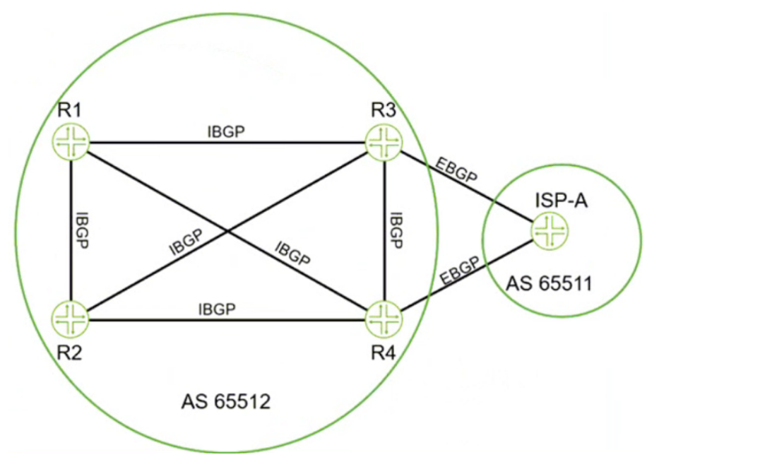 R1, R2, R3, and R4 are peering within AS 65512 using IBGP.