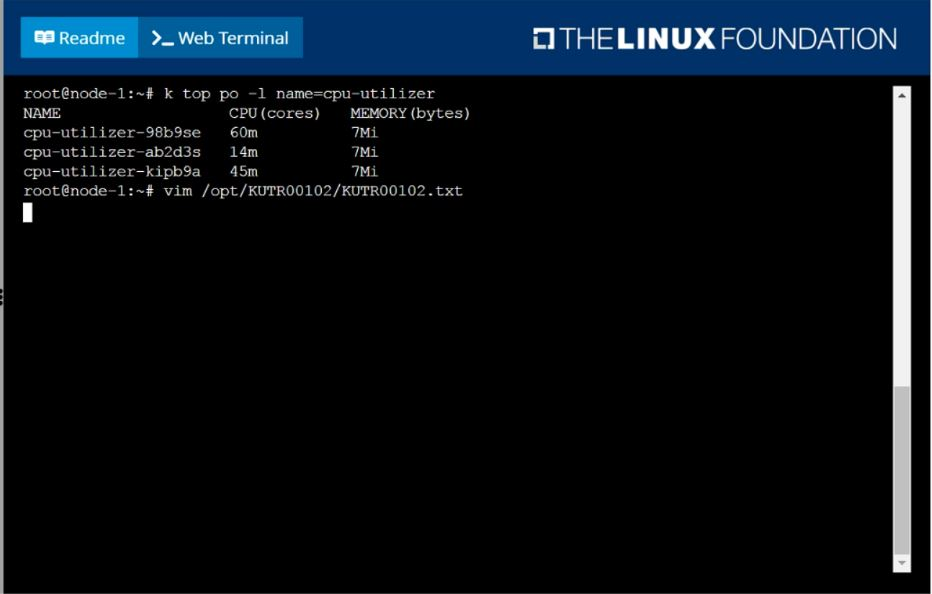 write the name of the pod consuming most CPU to the file /opt/KUTR00102/KUTR00102.txt (which already exists).