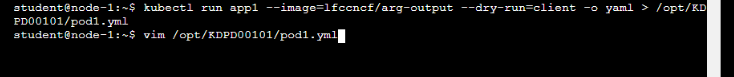 /opt/KDPD00101/podl.yml to create a pod named app1 that runs a container named app1cont using image Ifccncf/arg-output