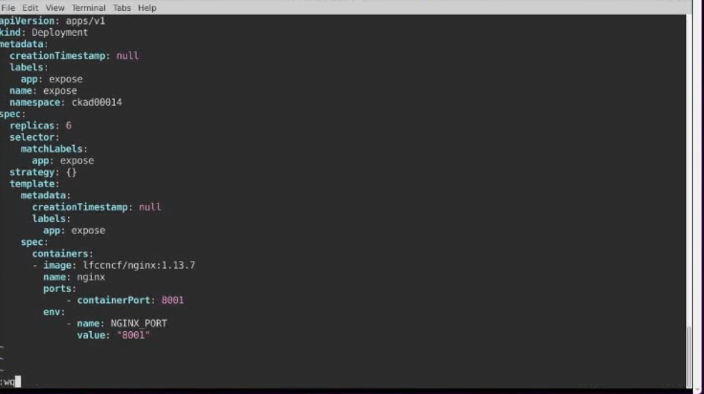 Create a Deployment named expose in the existing ckad00014 namespace running 6 replicas of a Pod. Specify a single container using the ifccncf/nginx: 1.13.7 image