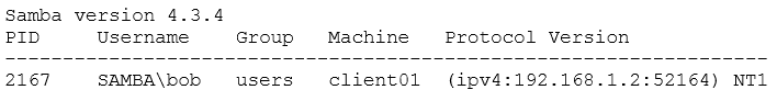 What samba command generates the following output? (Specify ONLY the command without any path or parameters.)