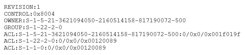 The smbcacls utility is used to manage Windows ACLs on Samba shares. The output format shown in the image suggests it relates to detailed ACL information, which is typically generated by smbcacls.