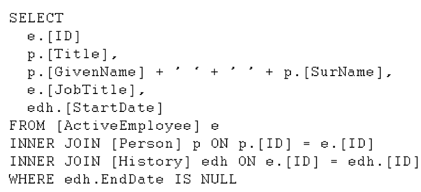 You are maintaining a Microsoft SQL Server database. You run the following query: