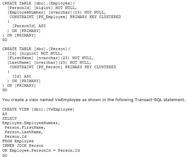 You develop a Microsoft SQL Server 2012 database that contains tables named Employee and Person.