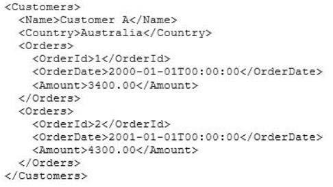You need to display rows from the Orders table for the Customers row having the CustomerId value set to 1 in the following XML format.