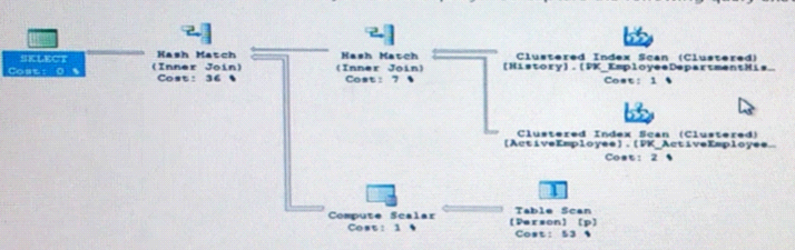 You observe performance issues when you run the query. You capture the following query execution plan: