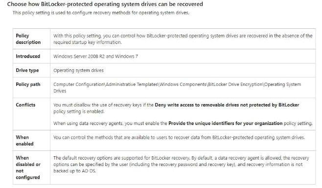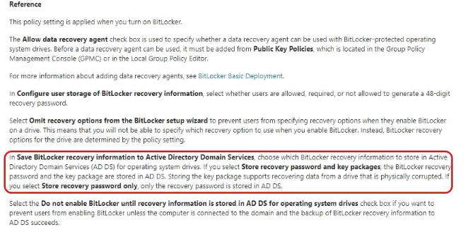 You need to ensure that the BitLocker recovery keys are stored in Active Directory.