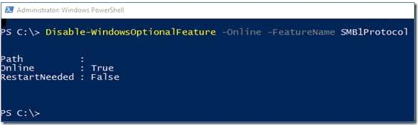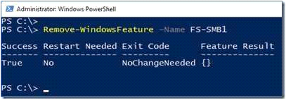 However, the question asks about Server! On Server, the PowerShell approach (Remove-WindowsFeature FS-SMB1): Remove-WindowsFeature FS-SMB1