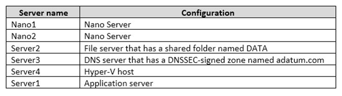 All servers run Windows Server 2016. All client computers run Windows 10.