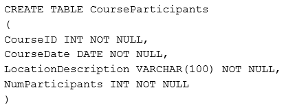 You use the table to store data about training courses: when they finished the location, and the number of participants in the courses.
