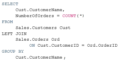 You have a database named DB1 that contains two tables named Sales.Customers and Sales.Orders. Sales.Customers has a foreign key relationship to a column named CustomerID in SalesOrders.