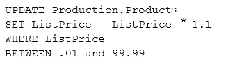 You have a table named Products that stores information about products your company sells. The table has a column named ListPrice that stores retail pricing information for products.