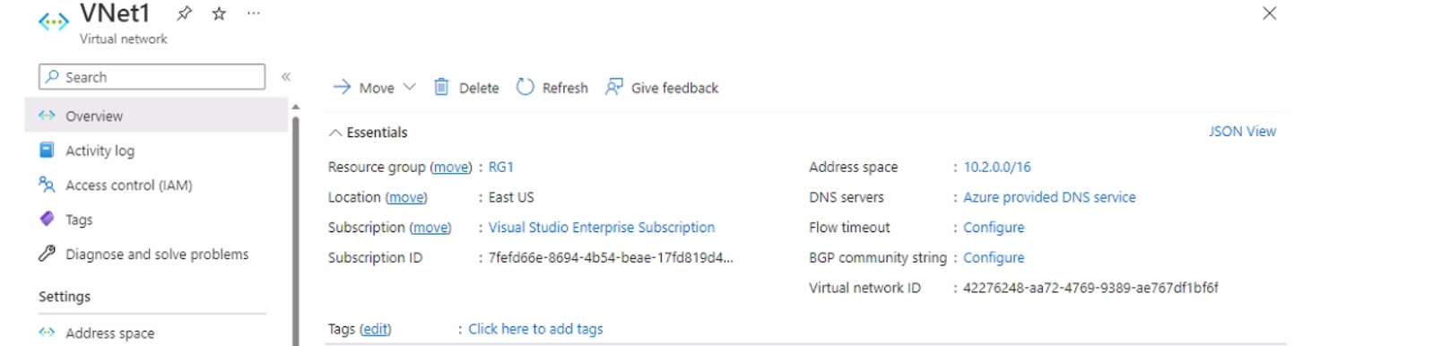 You plan to peer VNet1 to another virtual network named VNet2. VNet2 has an address space of 10.2.0.0/16.