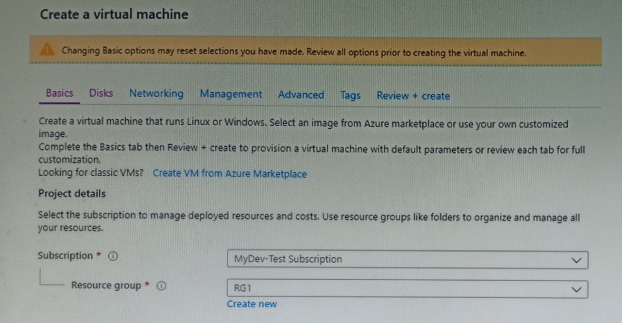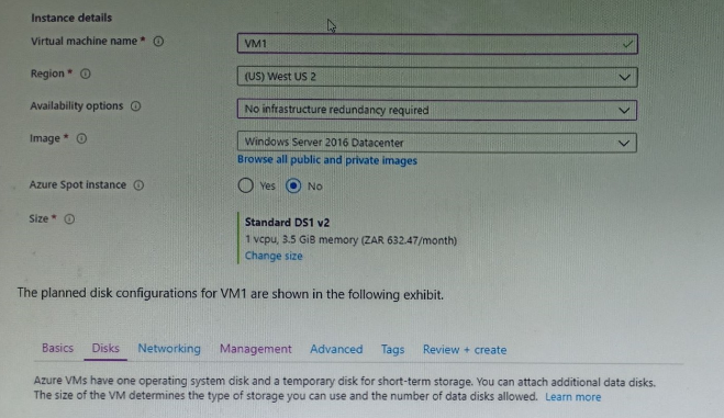 You plan to create an Azure virtual machine named VM1 that will be configured as shown in the following exhibit.