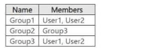 You have an Azure subscription that contains two users named User1 and User2 and the Microsoft Entra groups shown in the following table.