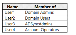 Your network contains an on-premises Active Directory domain named contoso.com. The domain contains the users shown in the following table.