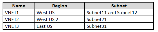 You have an Azure subscription that contains the virtual networks shown in the following table.
