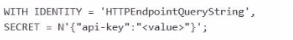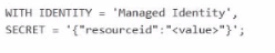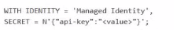 WITH IDENTITY = 'Managed Identity', SECRET = '{'resourceid':'https://cognitiveservices.azure.com'}';
