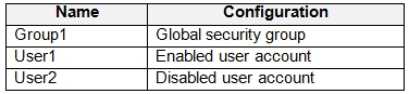 Your network contains an on-premises Active Directory domain named contoso.com. The domain contains the objects shown in the following table.
