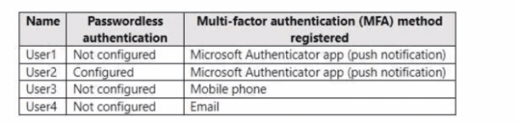 You have a Microsoft 365 E5 subscription that contains the users shown in the following table.