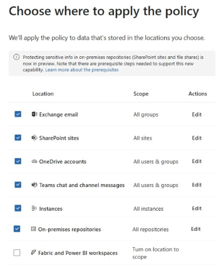 You are creating a DLP policy named Policy1 that will be applied to the locations as shown in the following exhibit.