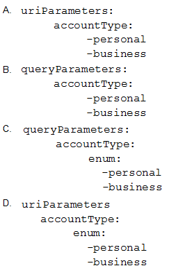 There are two types of accounts: personal and business. How can an accountType parameter be specified in RAML so http://localhost/acme/accounts?accountType=personal is a valid request to the implementation?