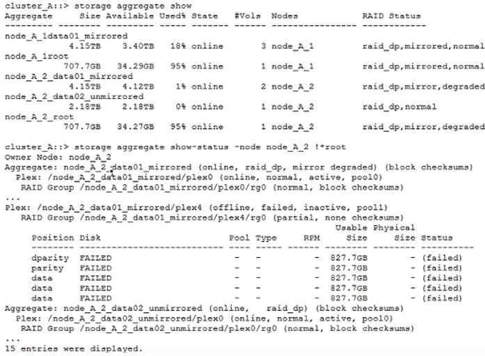 After performing failover testing on a newly deployed MetroCluster configuration, some aggregates remain in a degraded state. Referring to the exhibit, which statement is true?