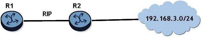 Router R2 advertises the network 192.168.3.0/24 to router R1 via RIP.