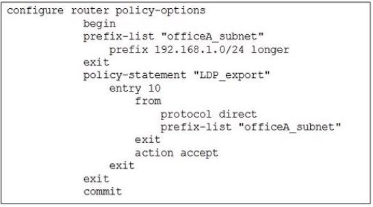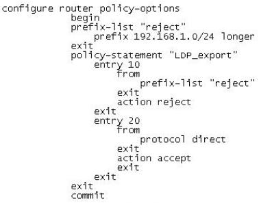 This policy is applied on a router as an LDP export policy and an LDP session has been established between this router and its neighboring router. In addition to the FECs learned from its neighbors, what additional FECs will appear in this router's LIB?
