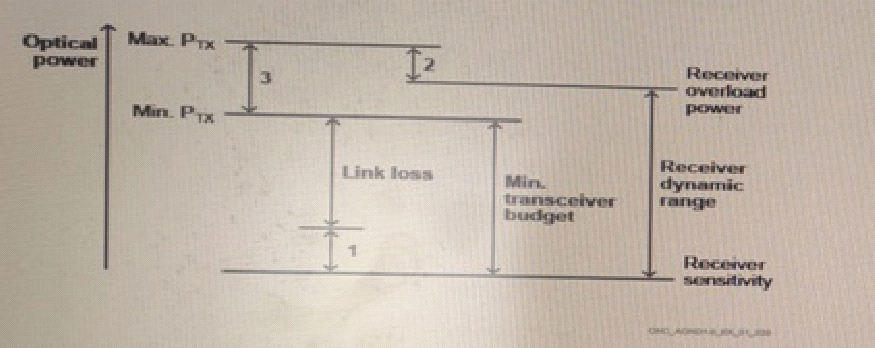 Consider the exhibit that shows a link power budget diagram. Which of the following is represented at location 2?