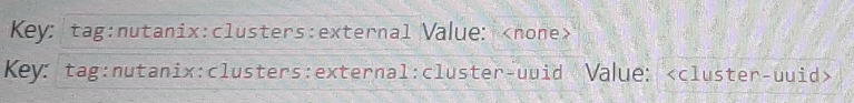nutanix:clusters:external - Identifies the cluster as external.