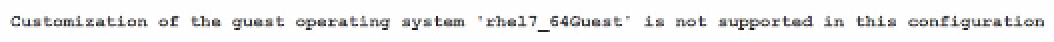 The error message indicates that customization of the guest operating system is not supported. This issue often arises because open-vm-tools is not installed or not running on the Redhat Enterprise Linux VM. open-vm-tools is necessary for vSphere to perform guest customization tasks, such as setting the hostname, IP configuration, and other initialization tasks.